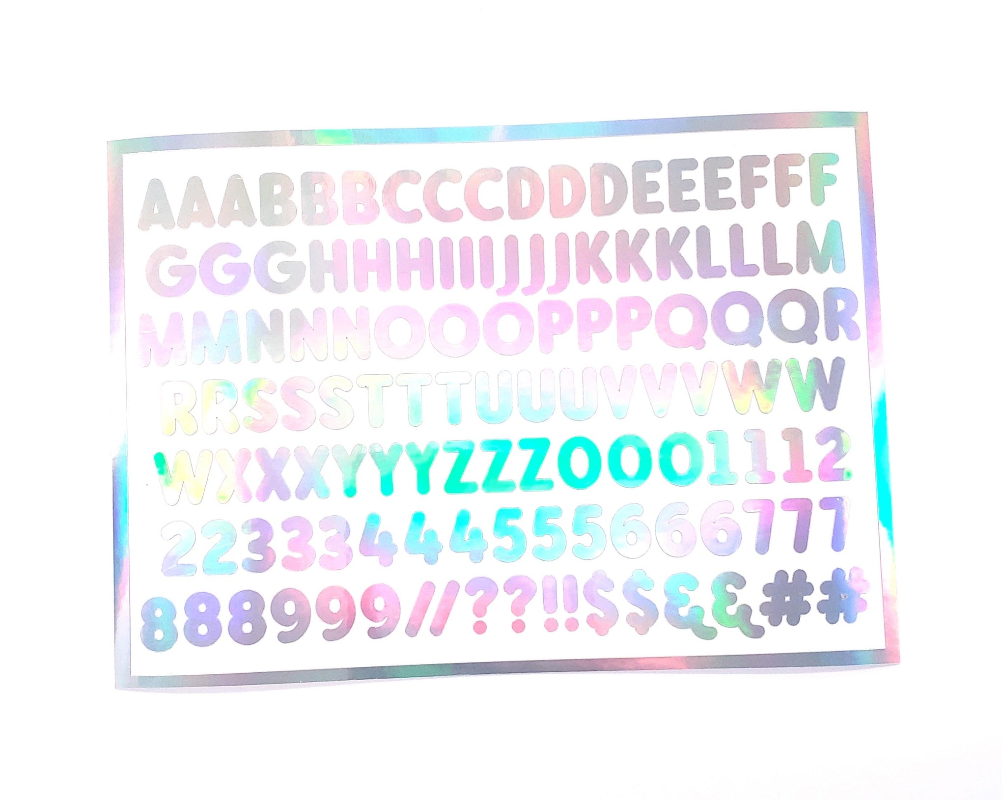 Silver Alphabet Stickers, Half Inch Vinyl Letters A thru Z, Numbers & Symbols.