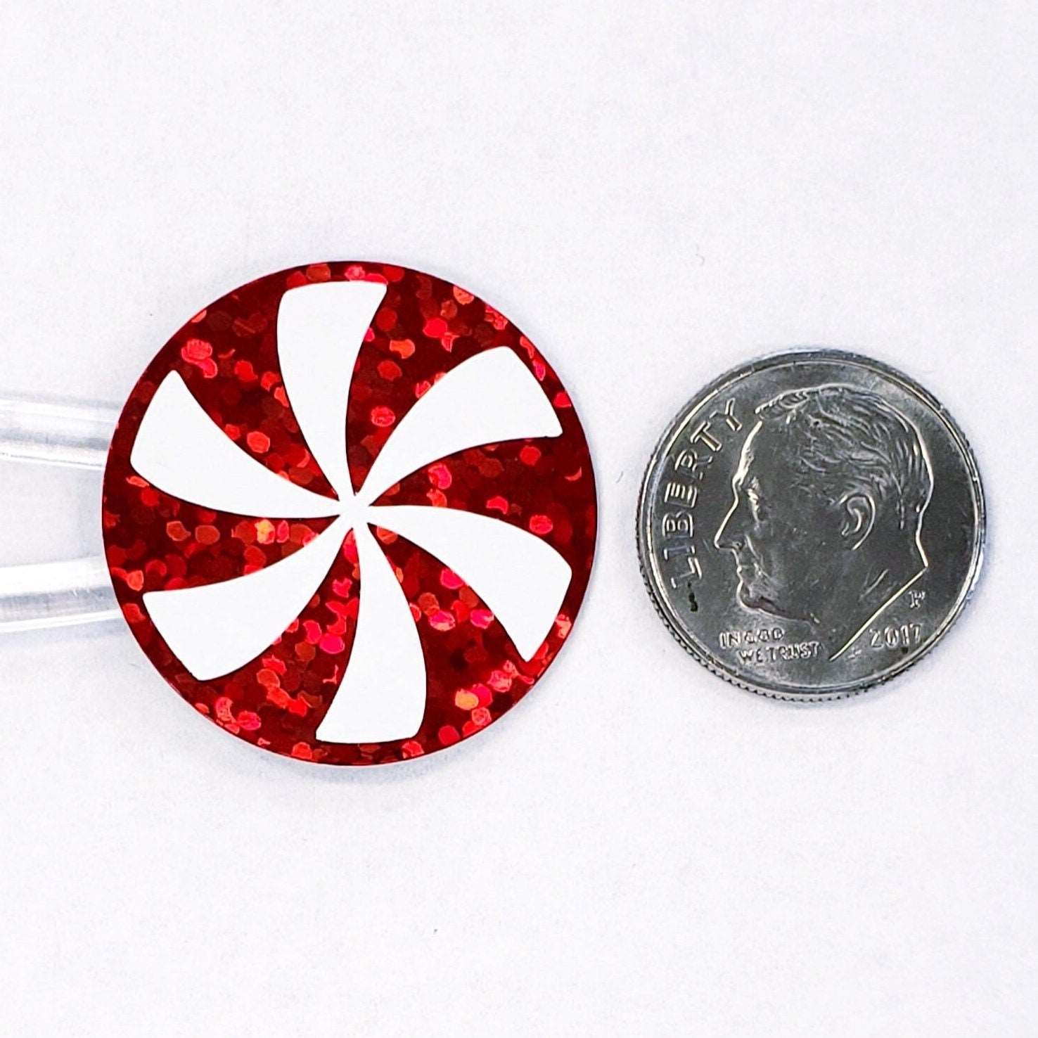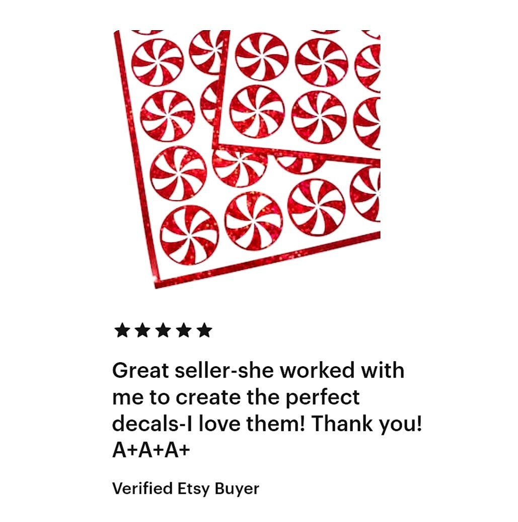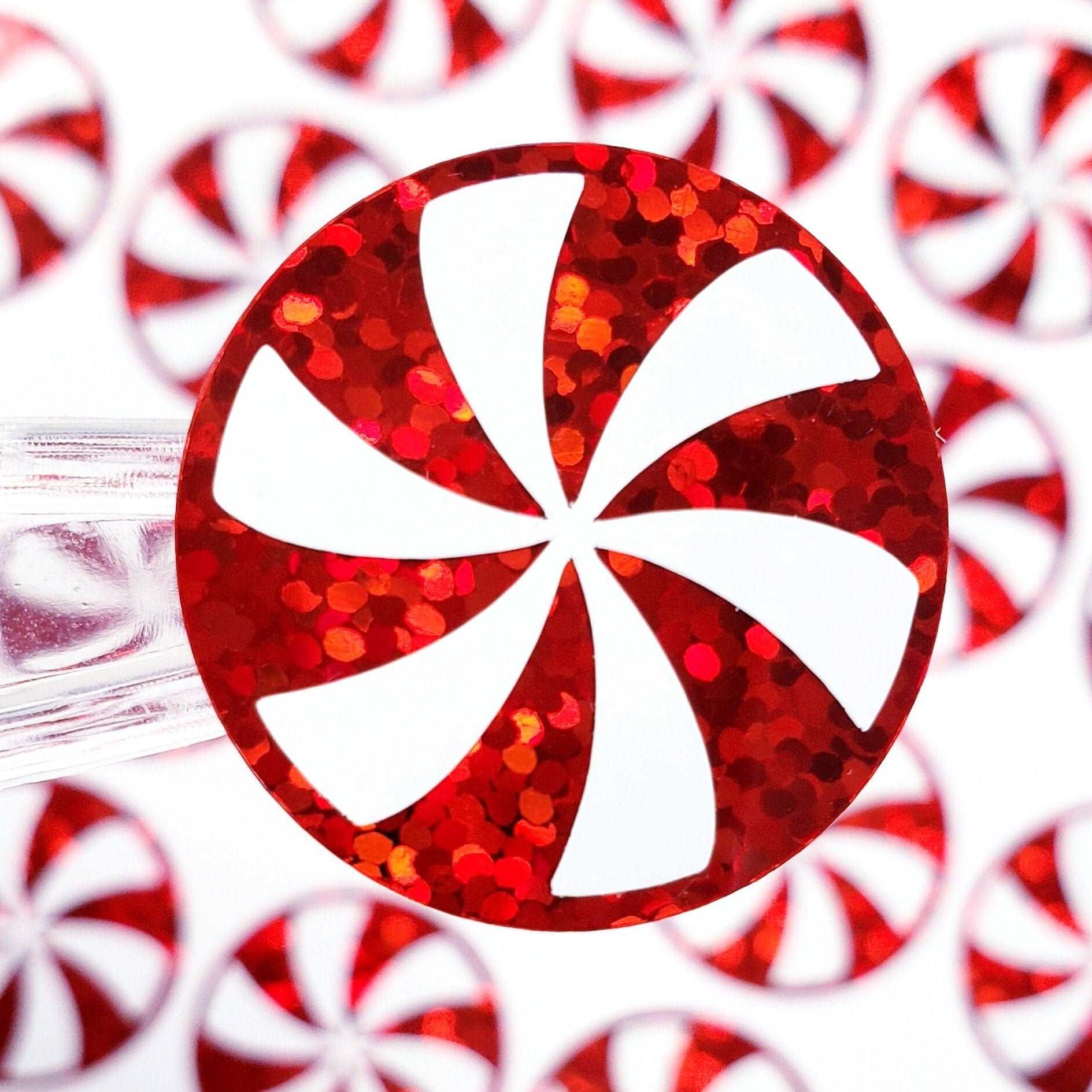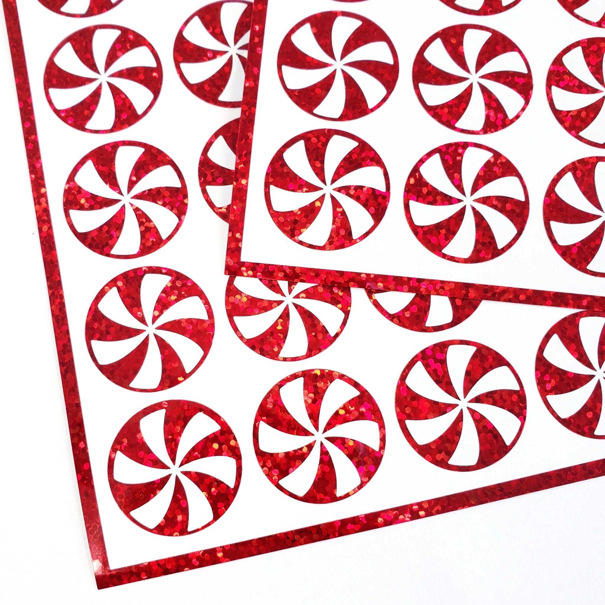 Decorate and add some festive flair to your home with these 24 Red Peppermint Candy Stickers! Cut from glittery adhesive vinyl, they're a super simple way to spread holiday cheer - just peel and stick them on any smooth surface without needing transfer tape. Transform cards, tiered trays, drink cups - anywhere you want some merry magic!