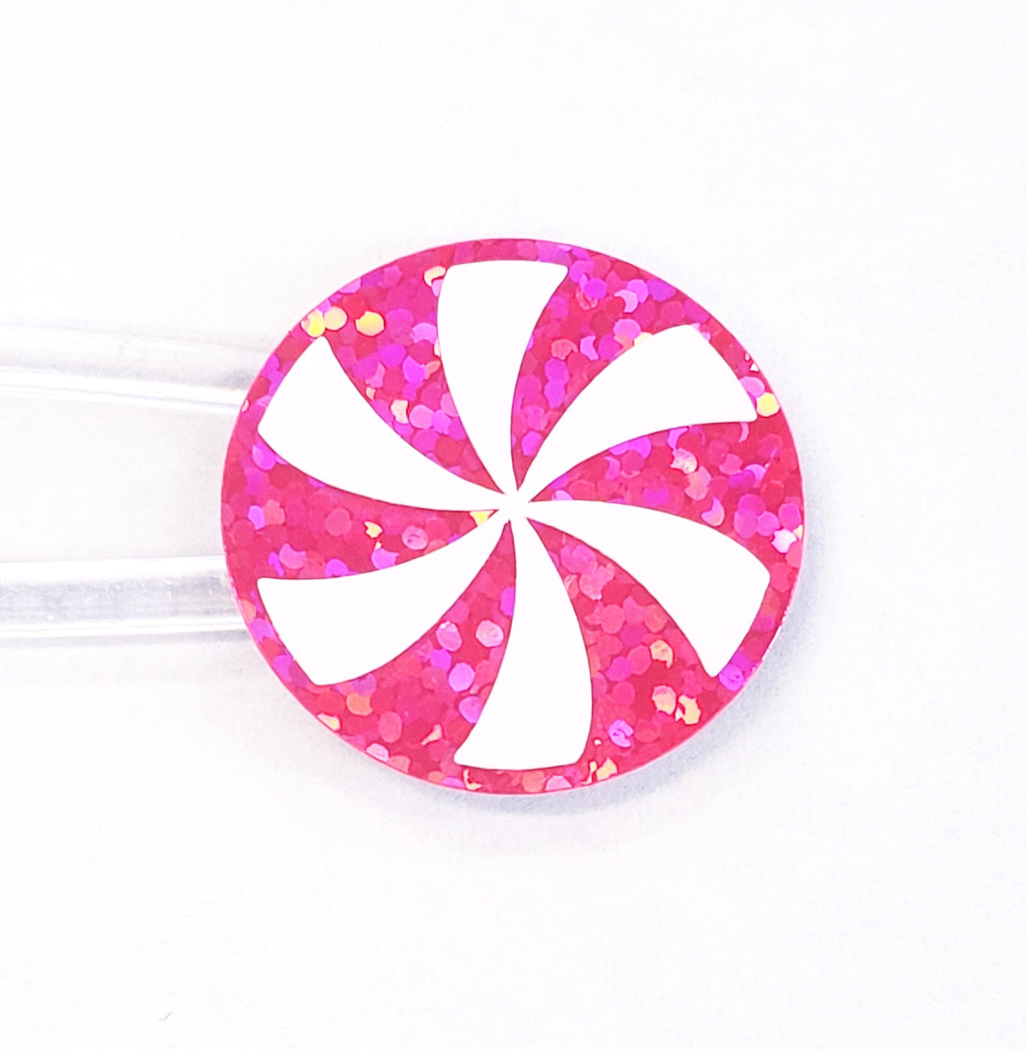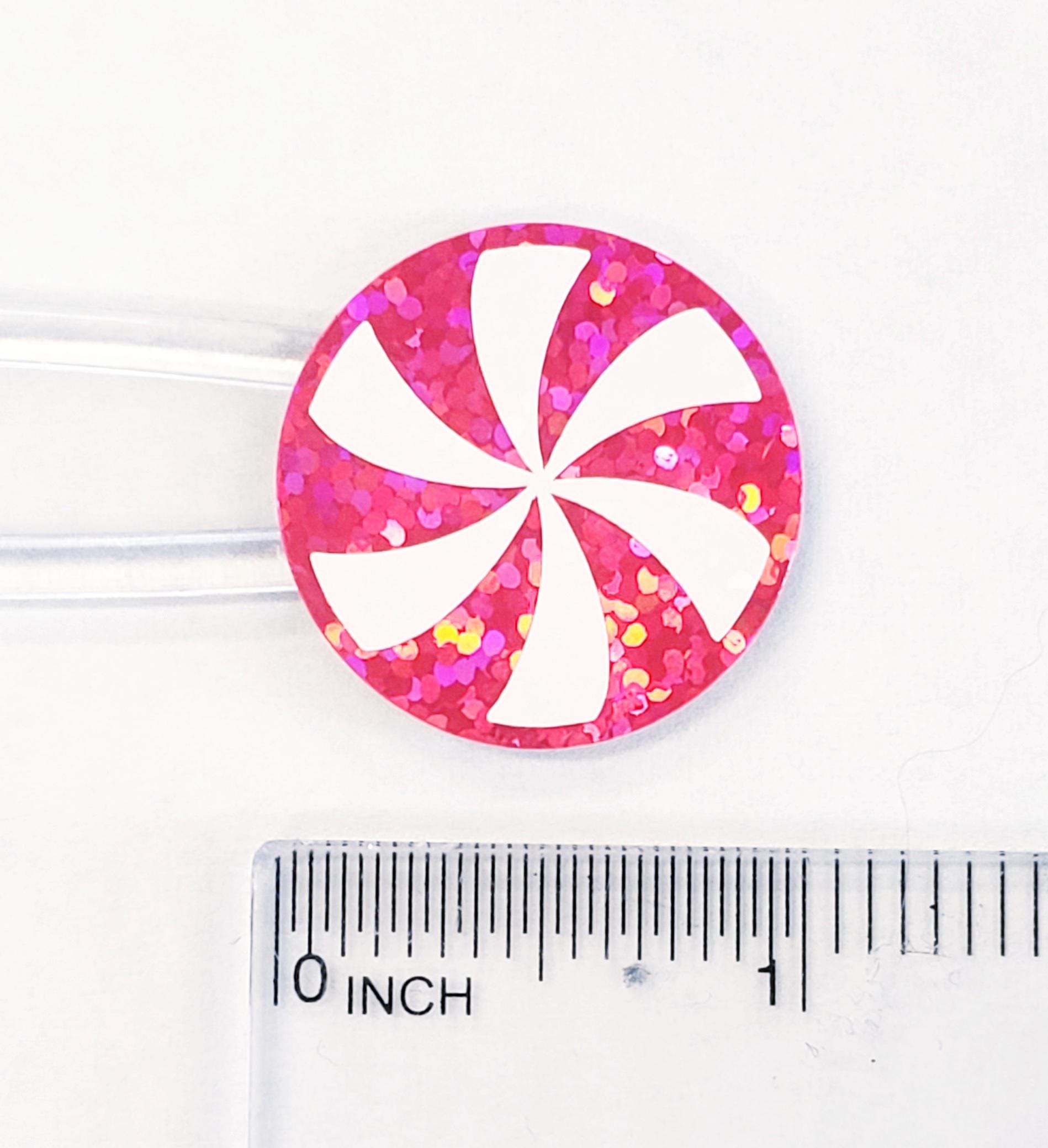 Peppermint Christmas Candy Stickers. Looking for a fun and easy way to add some sparkle to your holiday cards and gift tags? These Bright Pink Peppermint Candy Stickers are perfect! Just peel and stick them on any smooth surface. They're cut from pink and white glitter adhesive vinyl and come in a set of 24 stickers per sheet. Decorate your cards, tiered tray signs, drink cups - anywhere you want to add a little Christmas magic!
