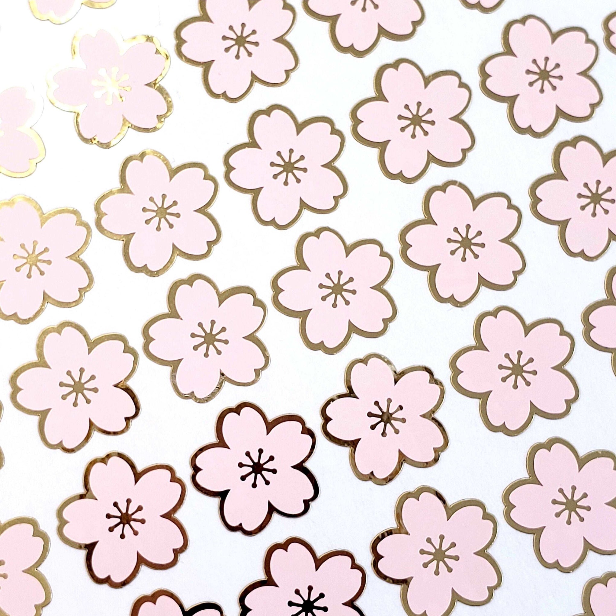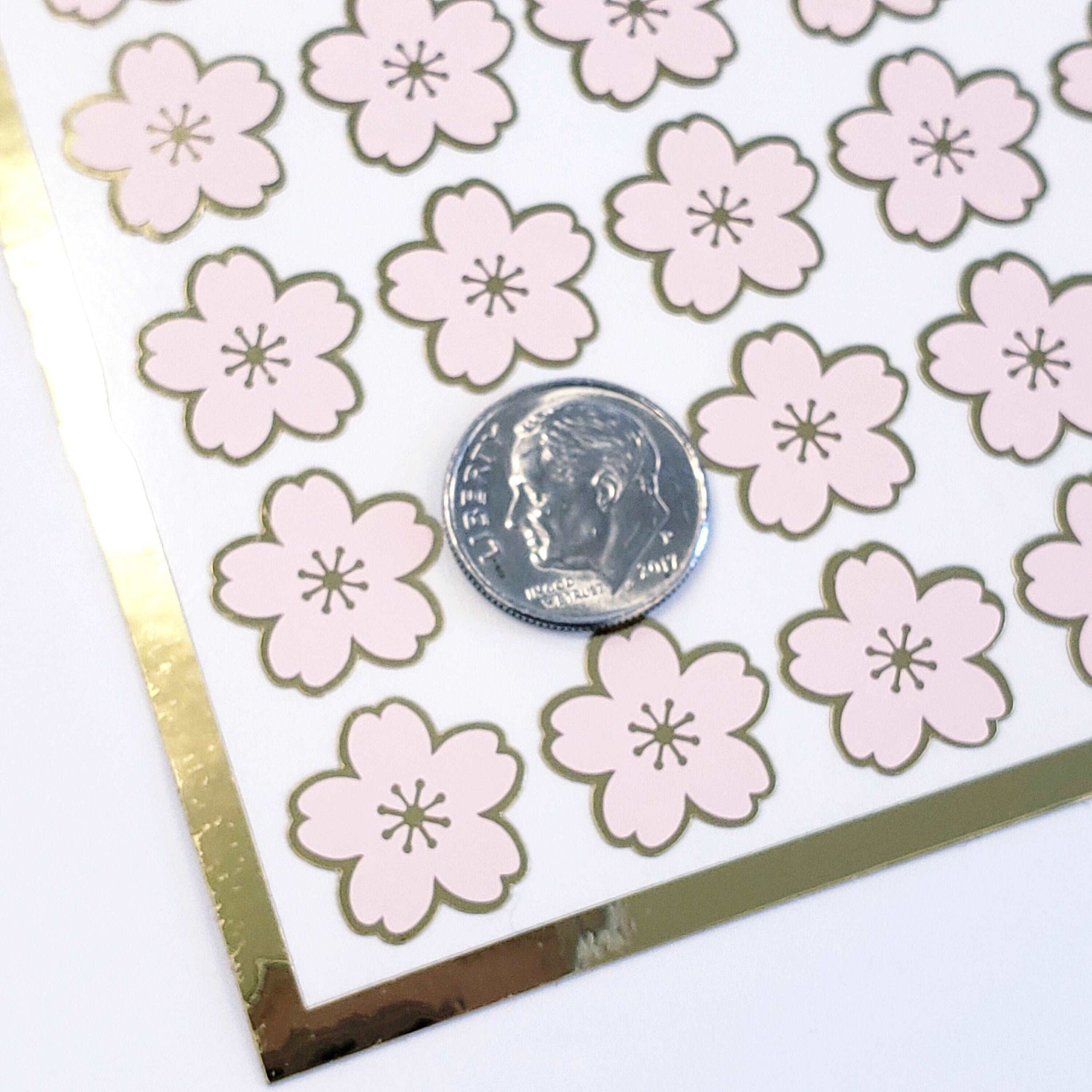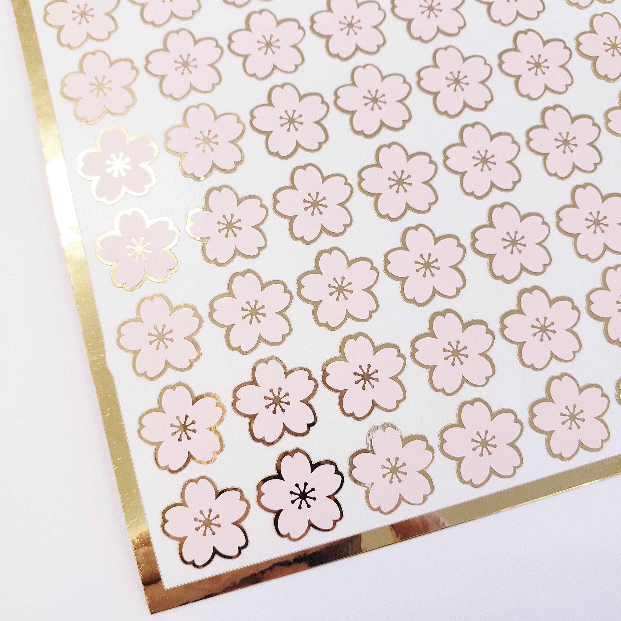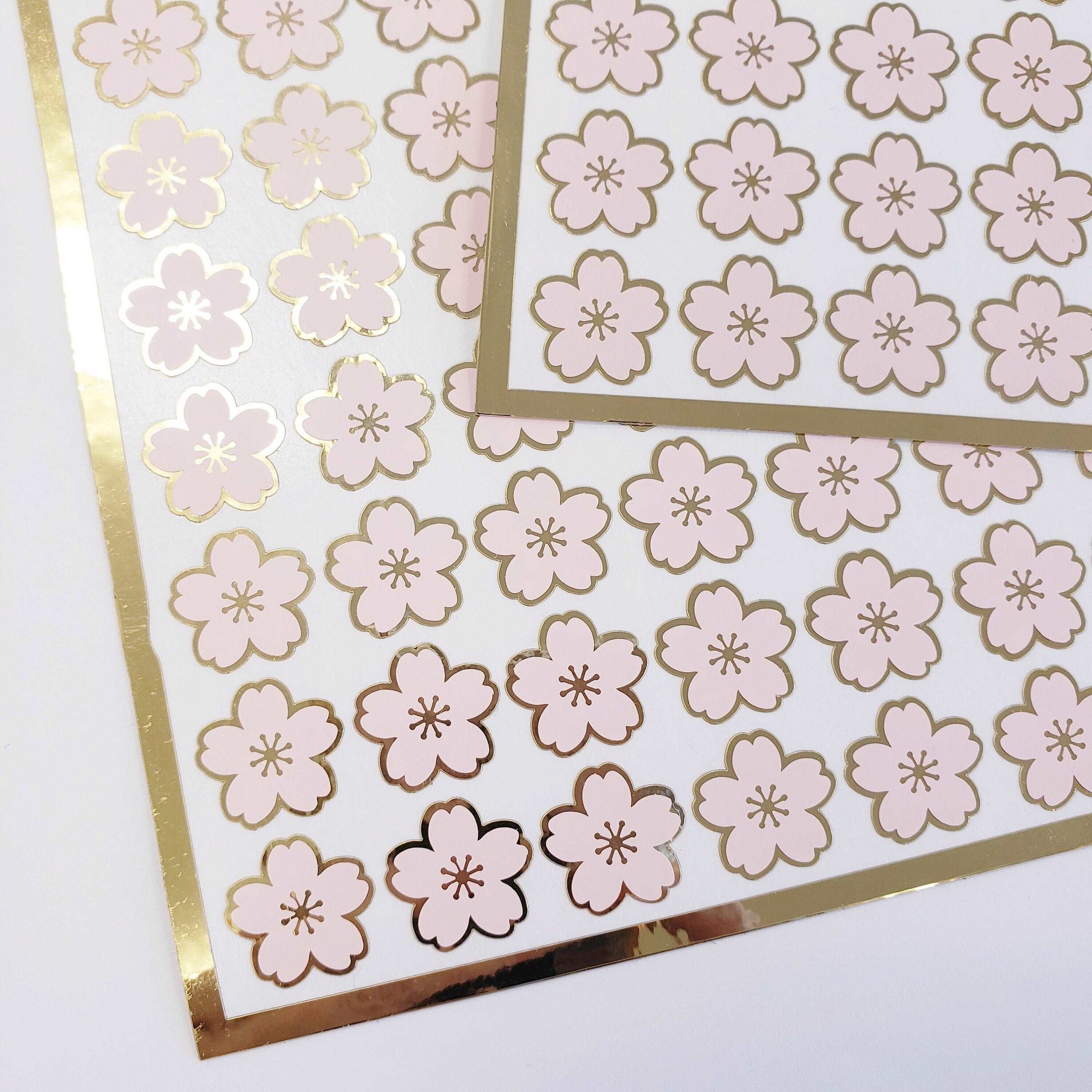 Pink Cherry Blossom Flower Stickers, set of 70 pale pink and gold