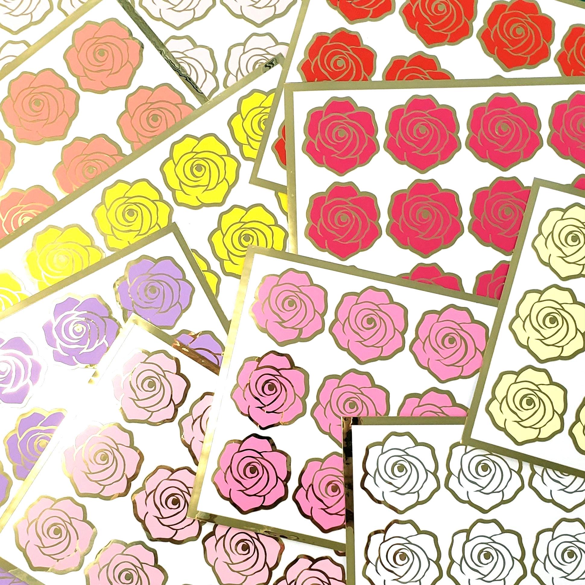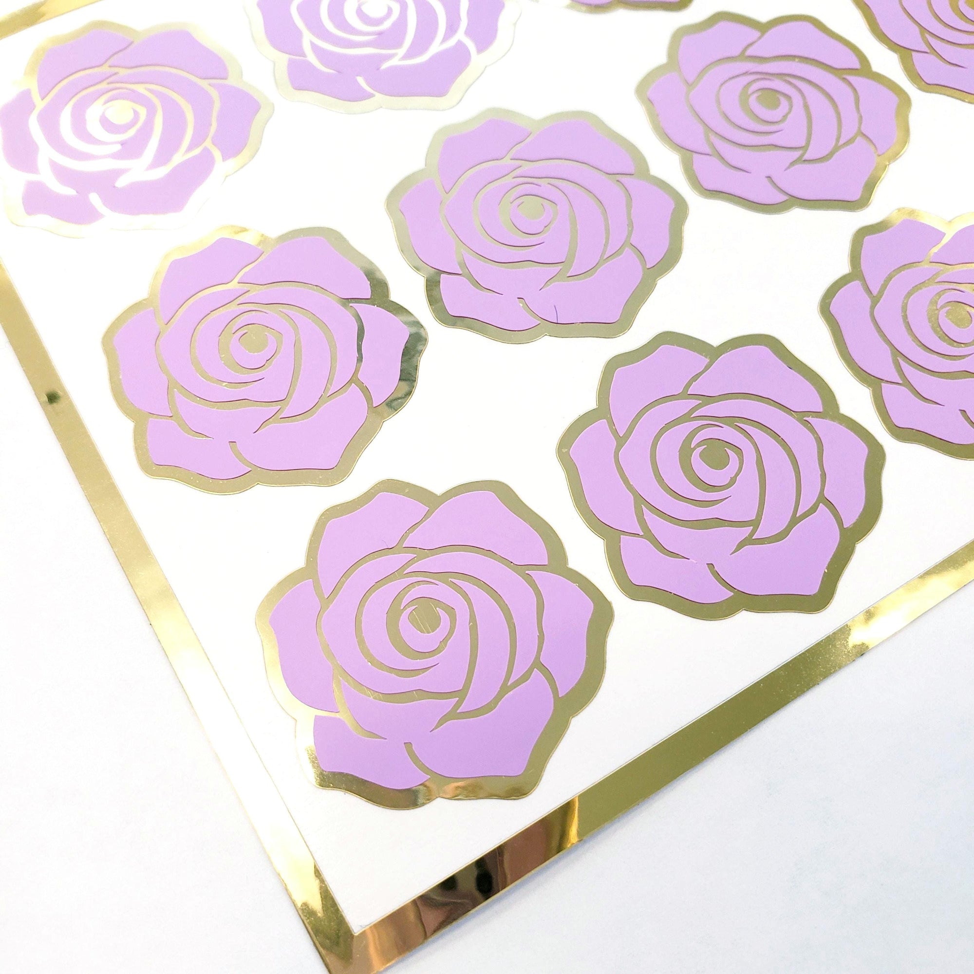 Purple Roses Sticker Sheet, set of 15 lilac and gold flowers for weddings, envelopes, notebooks, journals, laptops, phone covers and crafts.
