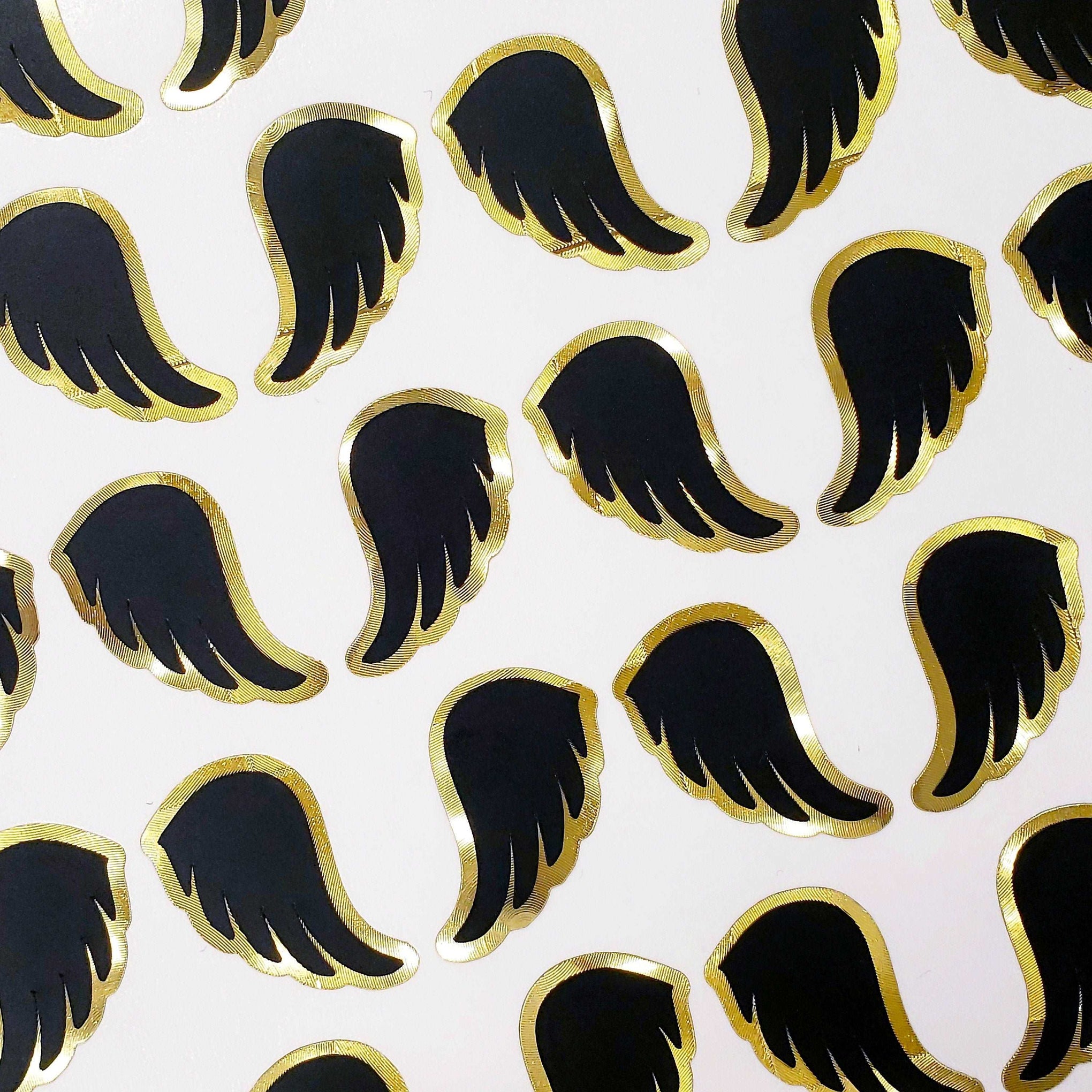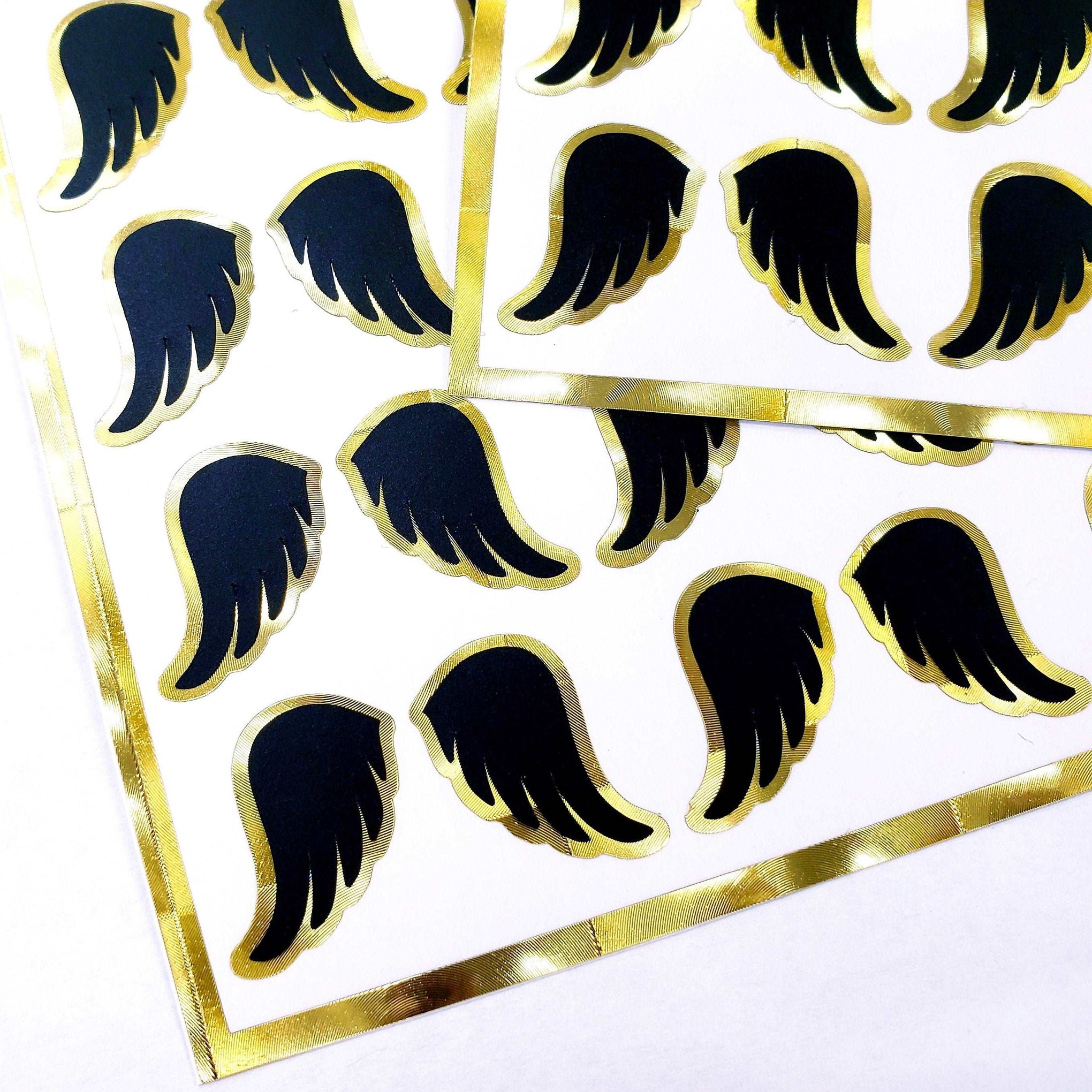 Introducing our exquisite Black and Gold Angel Wing Stickers. The black angel wings, with their dark and velvety hues, convey an aura of mystique and enigma, evoking a sense of elegant and ethereal beauty.