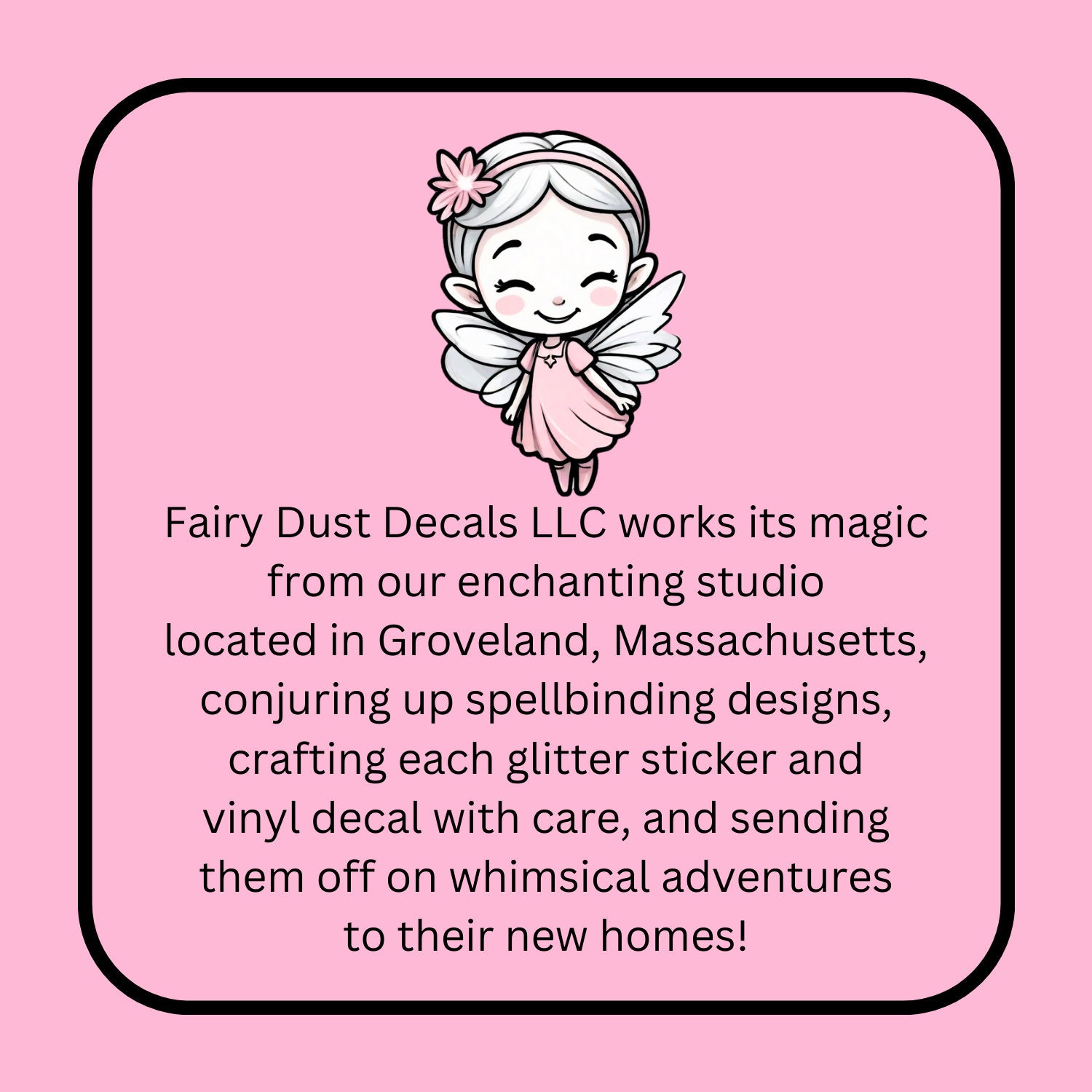 All stickers are designed, hand assembled and shipped by Fairy Dust Decals LLC located in Groveland, Massachusetts.