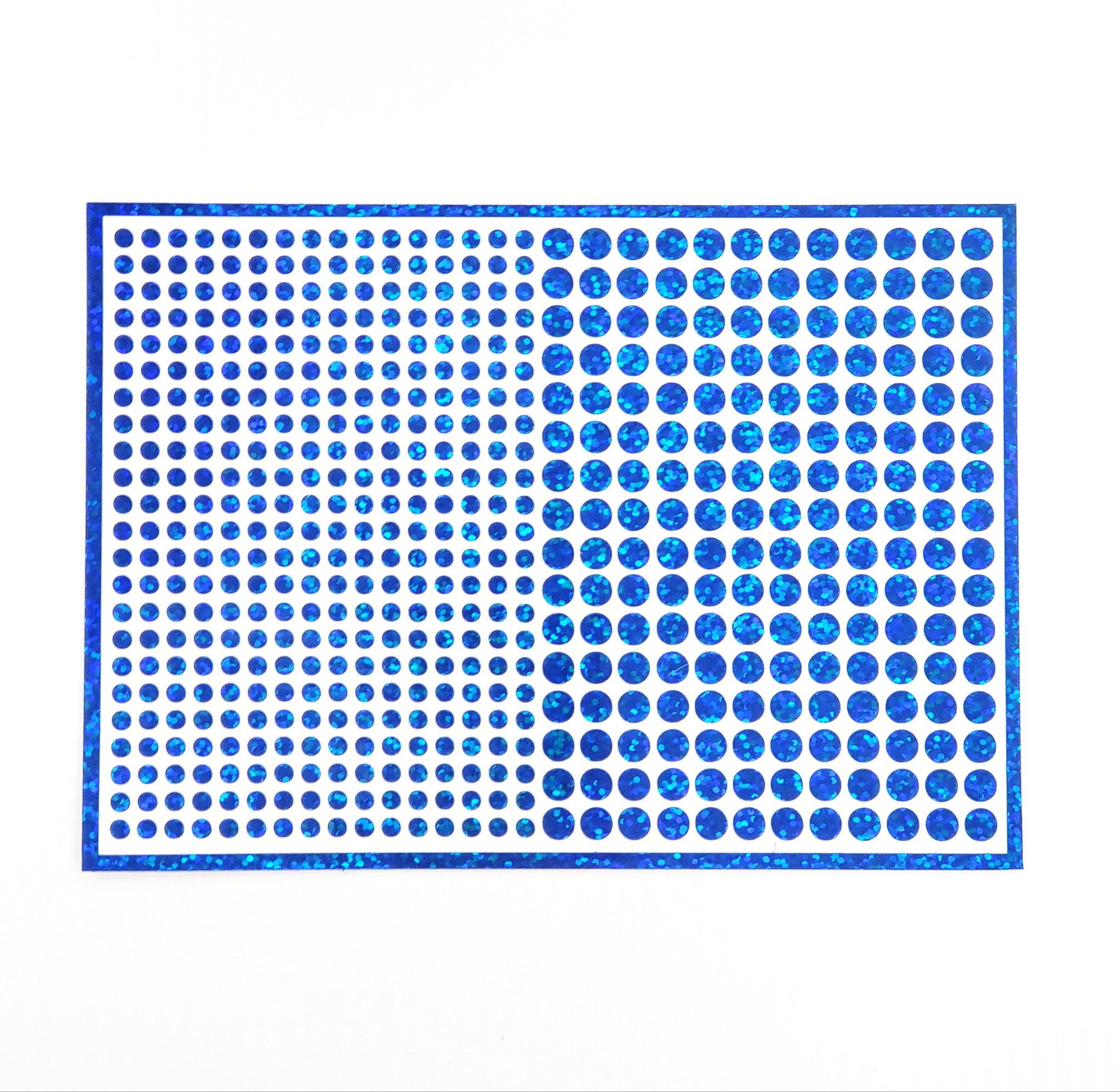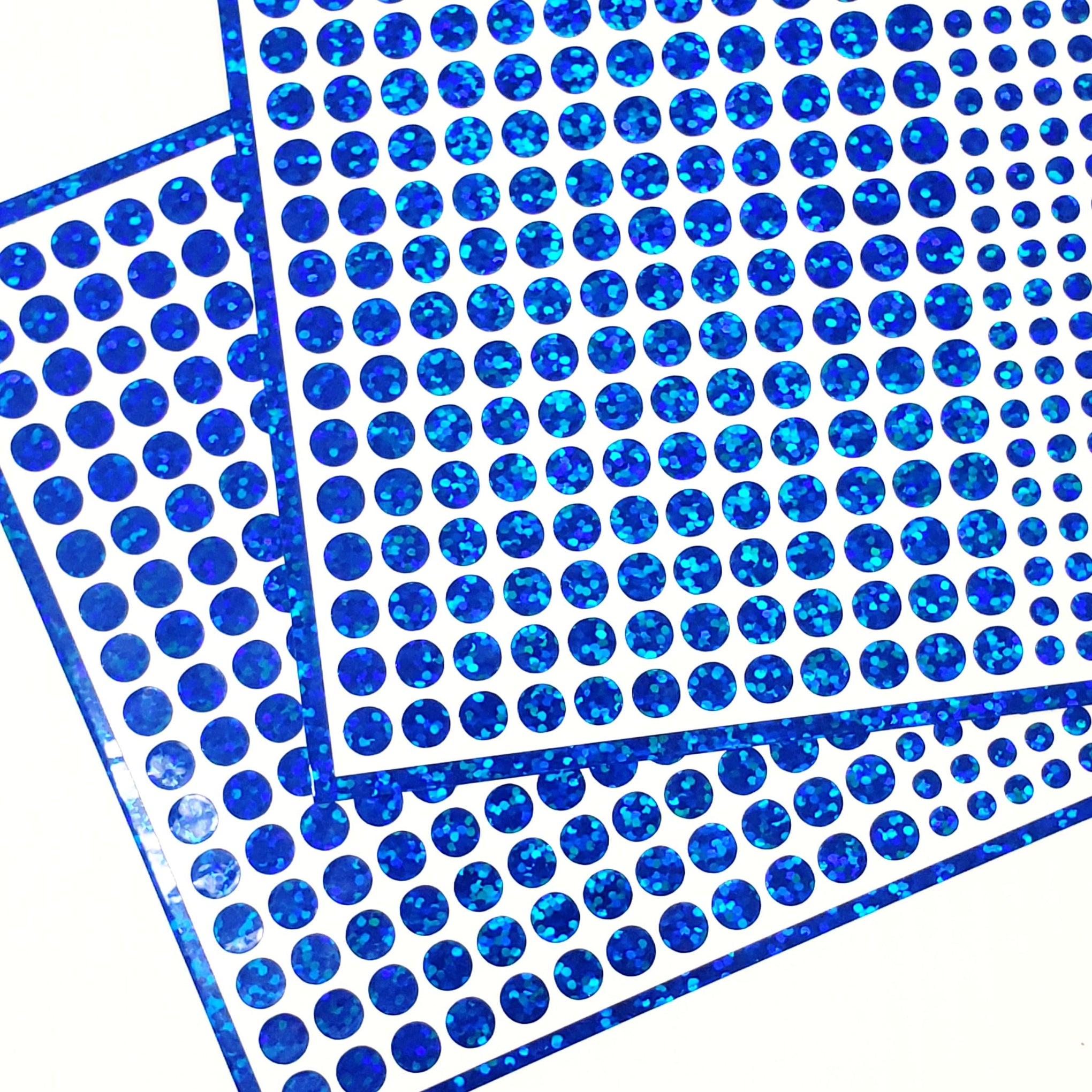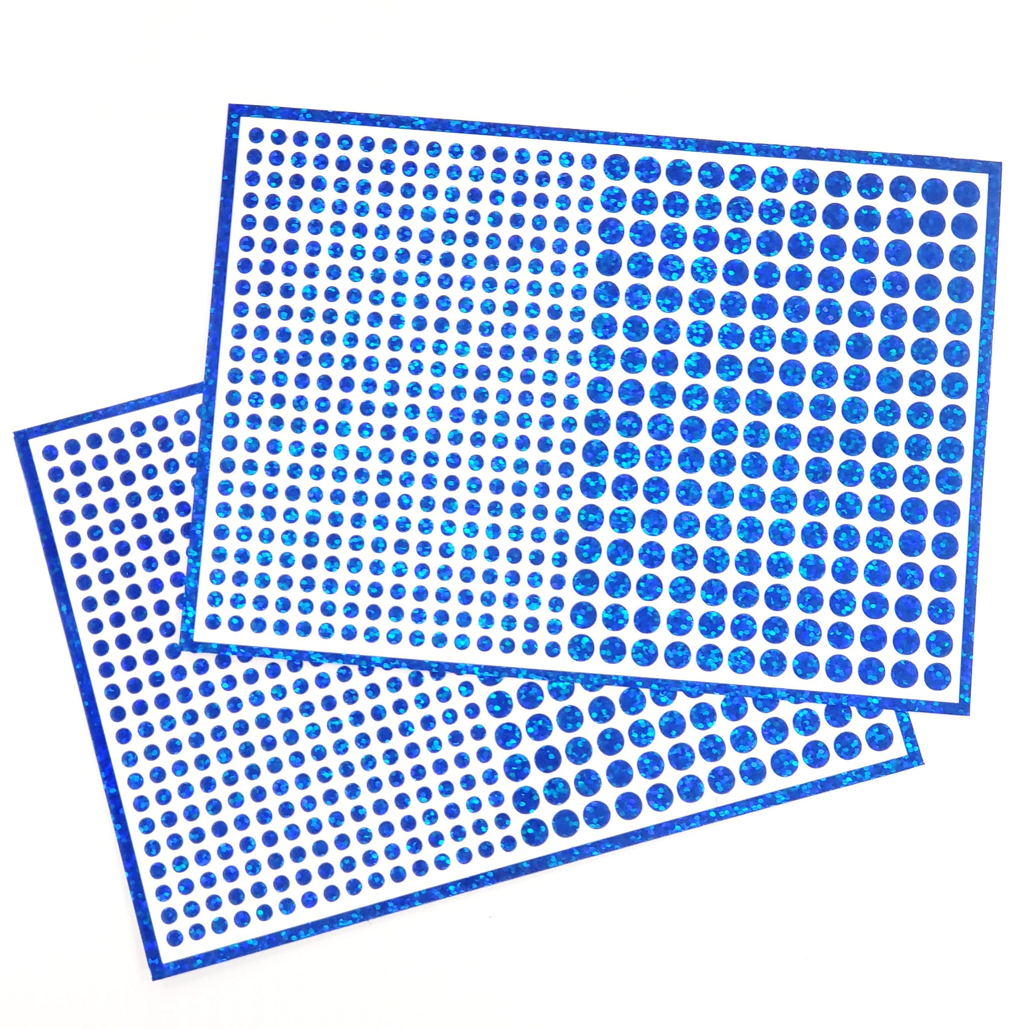 Set of 560 micro 2mm and 1/4" sized blue glitter dot stickers. No transfer tape needed, just the dots! The stickers are made from vinyl and will adhere to paper, cardboard, notecards, place cards, ornaments, envelopes, daily journals, period tracker chart, badge reels, photo card sleeves, invitations, planners, phone cases, laptops, keychains, nails, plastic, metal, glass, painted wood and many more smooth surfaces. Dots are smooth to the touch and will not shed.