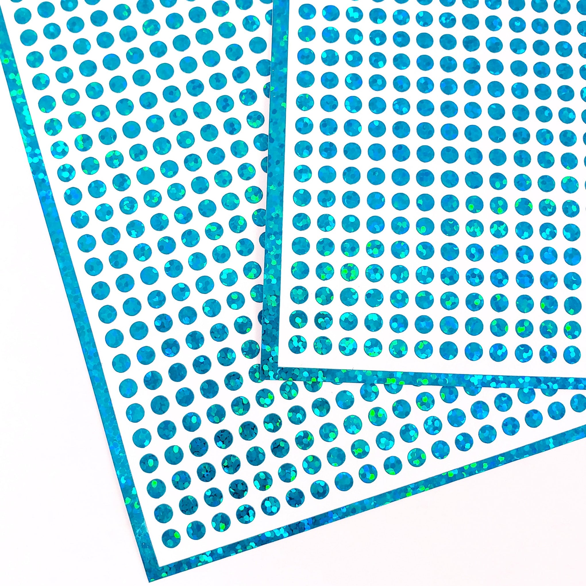 Set of 750 micro sized turquoise glitter dot stickers. No transfer tape needed, just the extra small teal dots! The stickers are made from vinyl and will adhere to paper, cardboard, notecards, place cards, ornaments, envelopes, daily journals, period tracker chart, badge reels, photo card sleeves, invitations, planners, phone cases, laptops, keychains, nails, plastic, metal, glass, painted wood and many more smooth surfaces. Dots are smooth to the touch and will not shed.