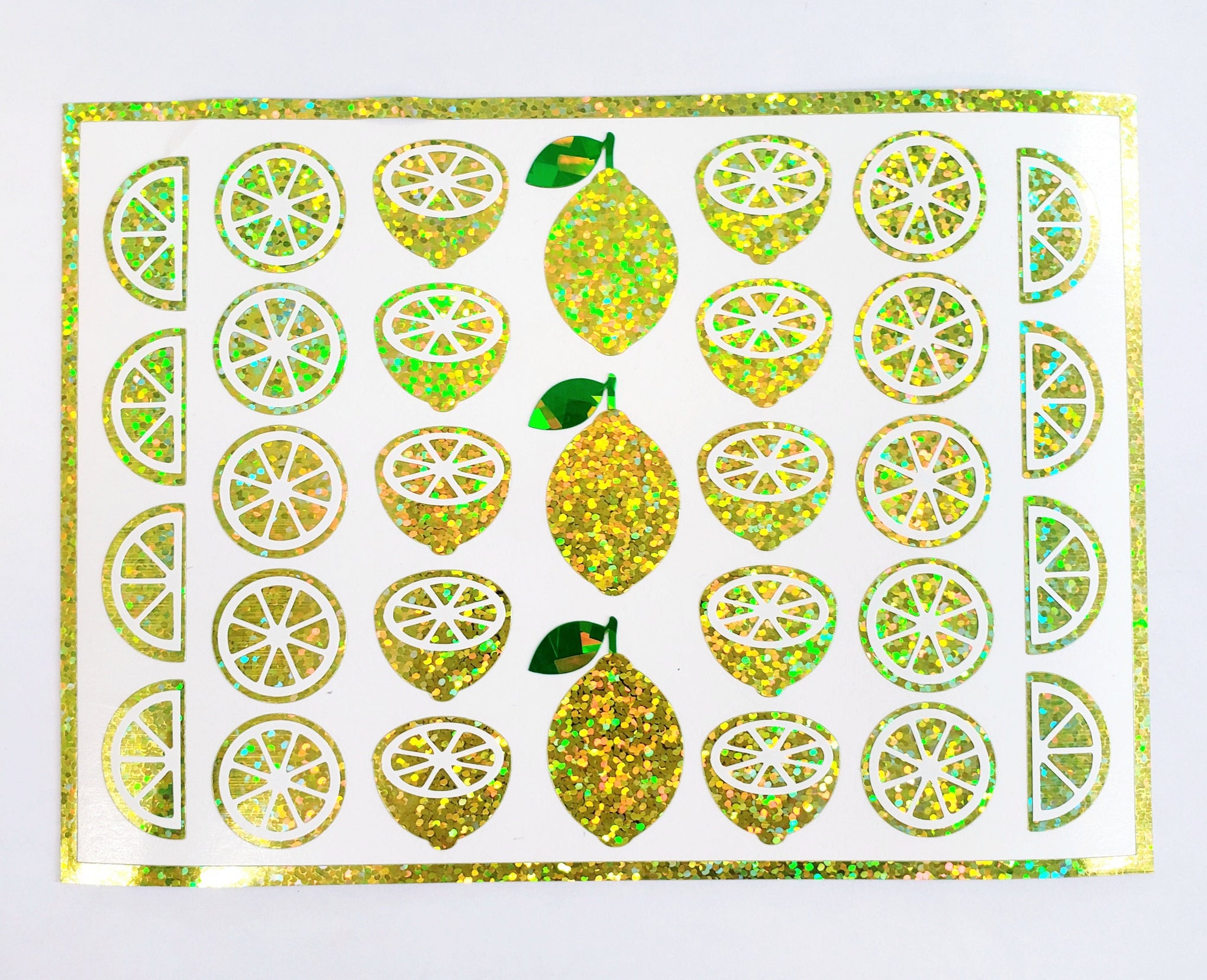 Lemon Stickers, set of 31 sparkly summer fruit decals, yellow citrus lemonade stickers.
