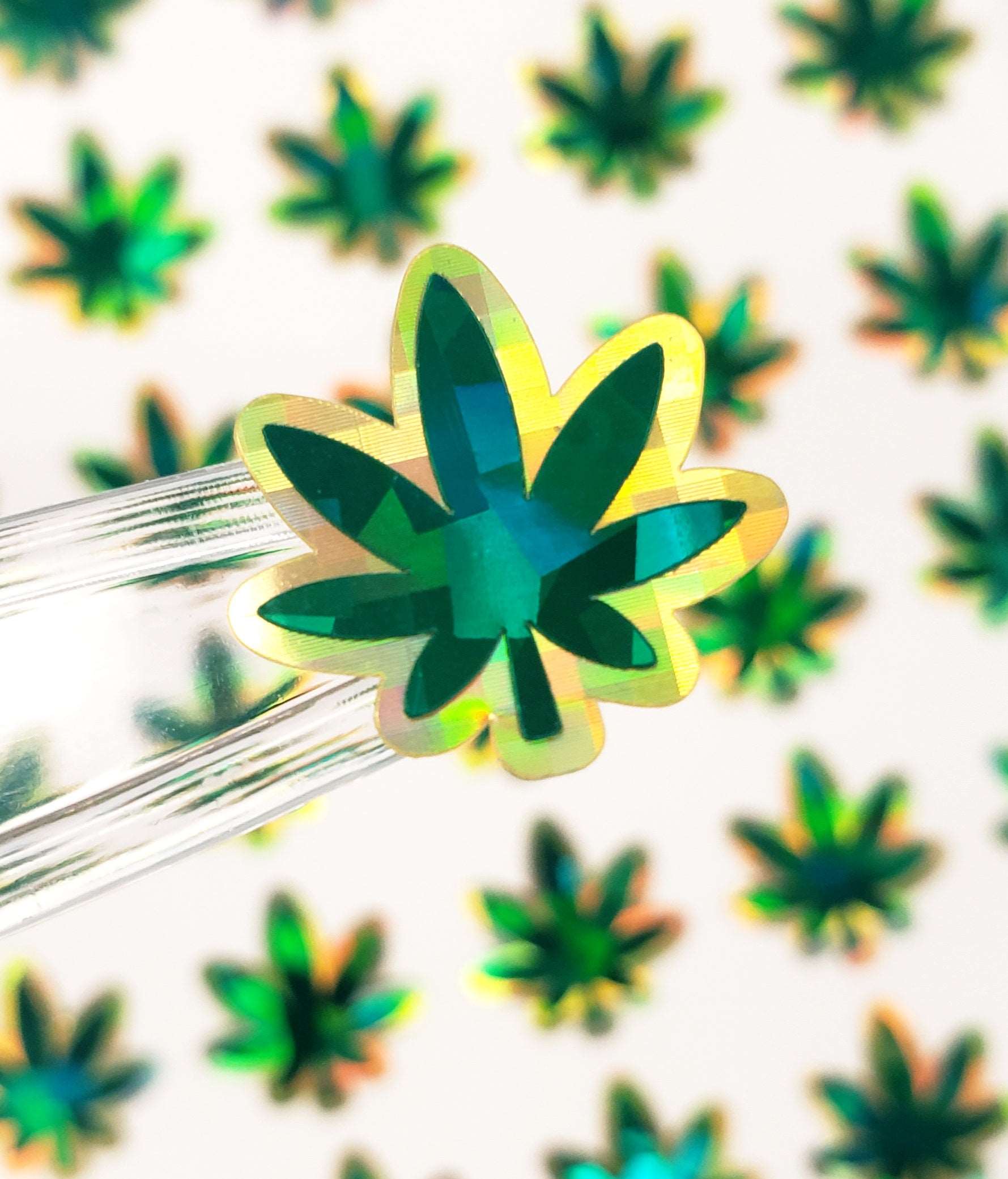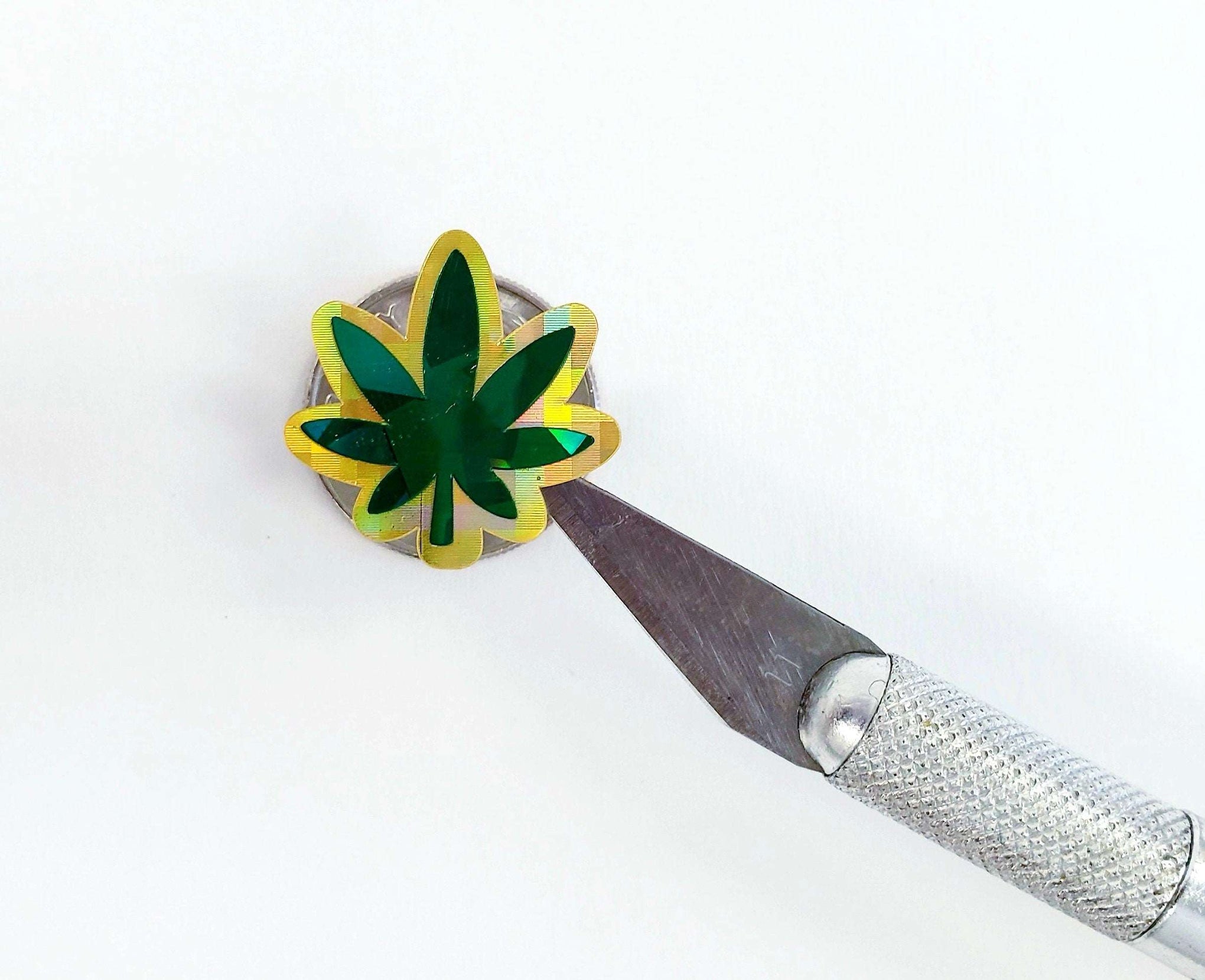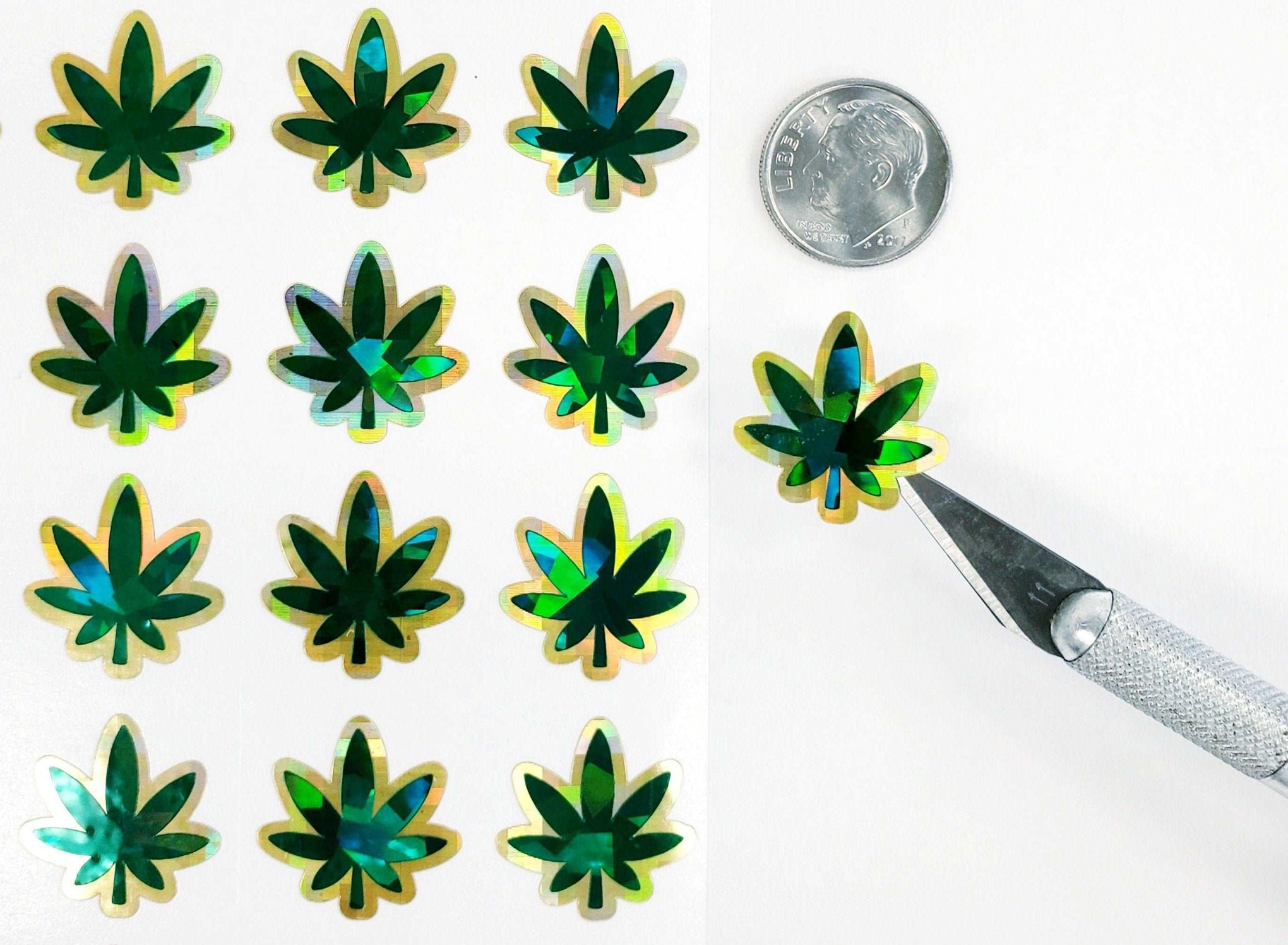 Pot Leaf Stickers, set of 30 green and gold leaves