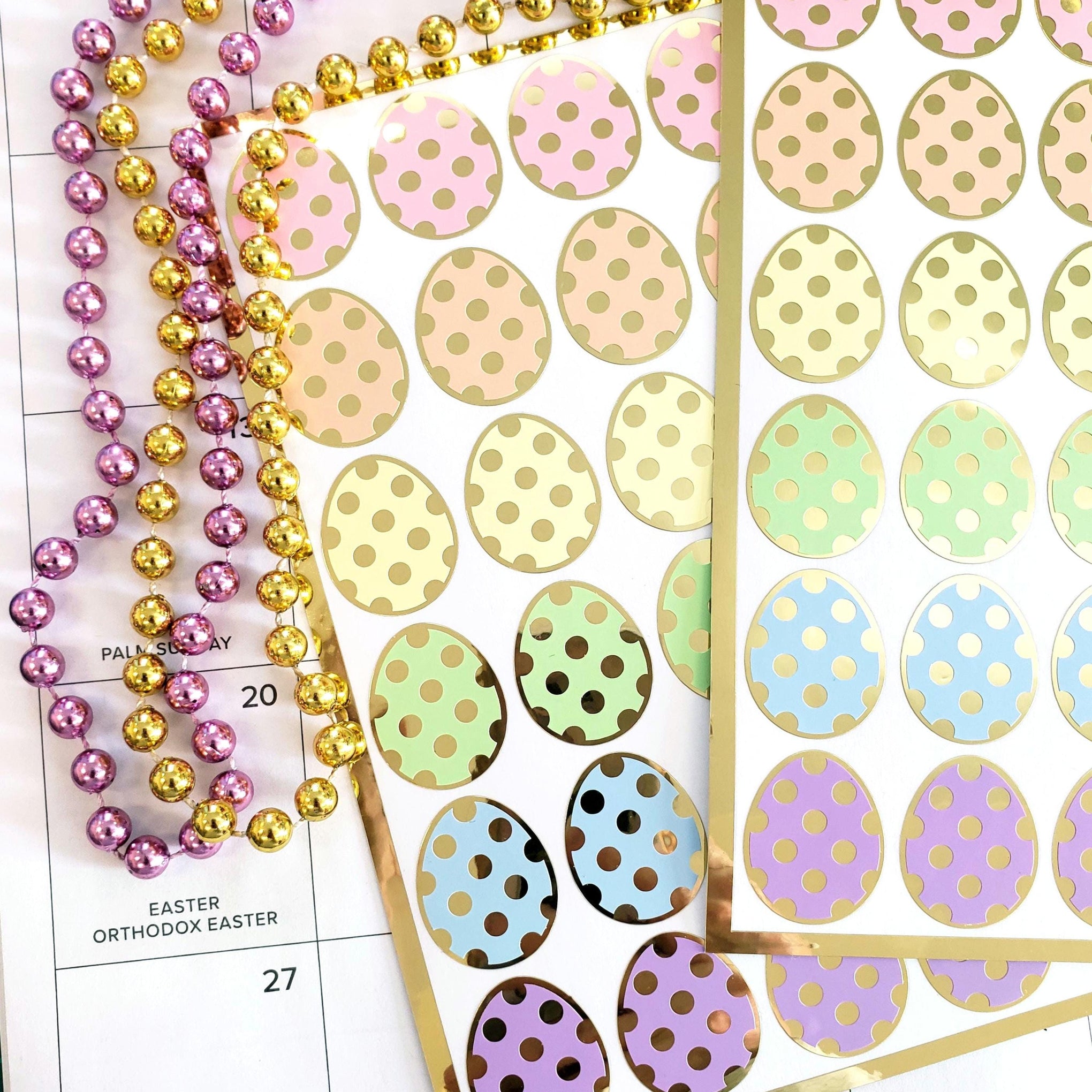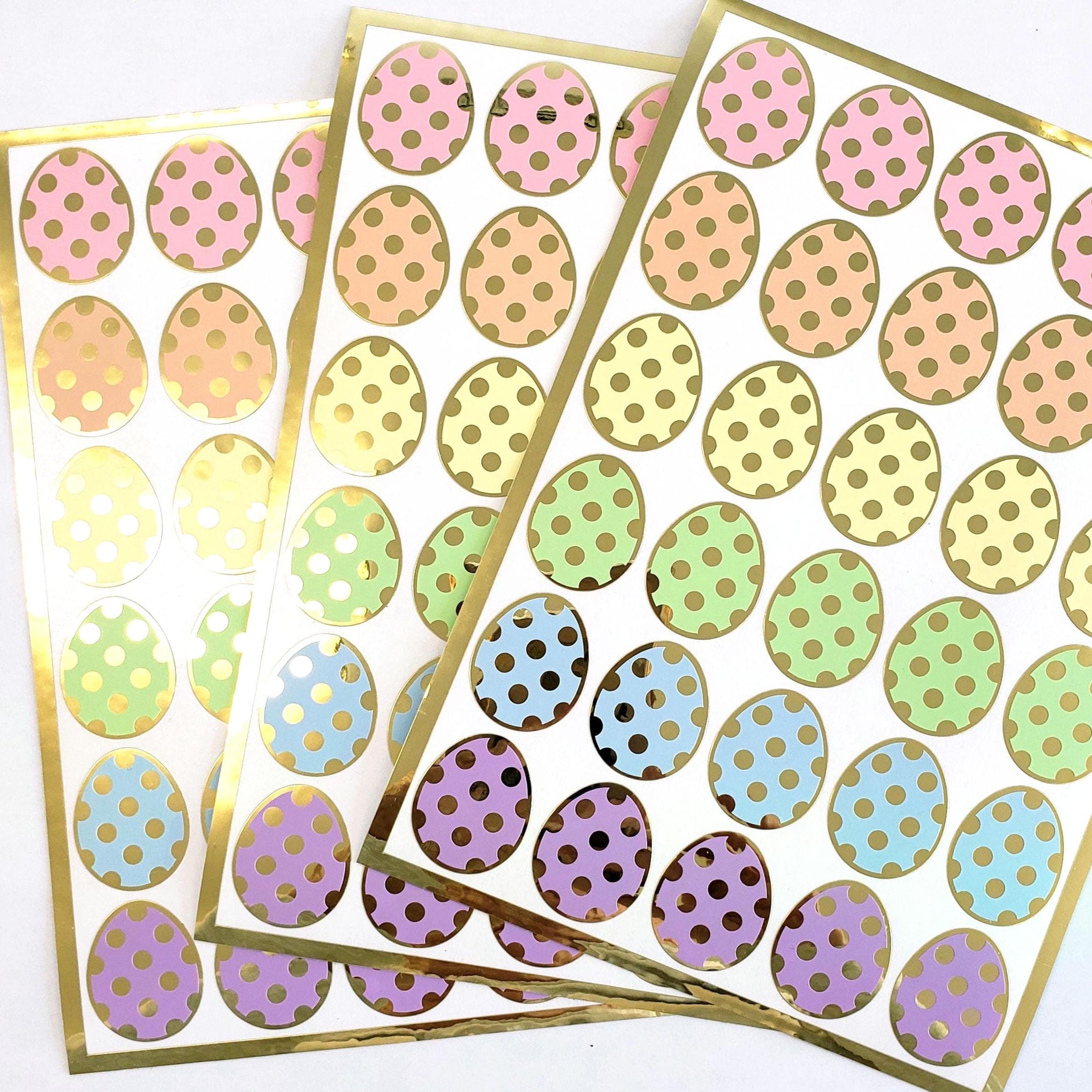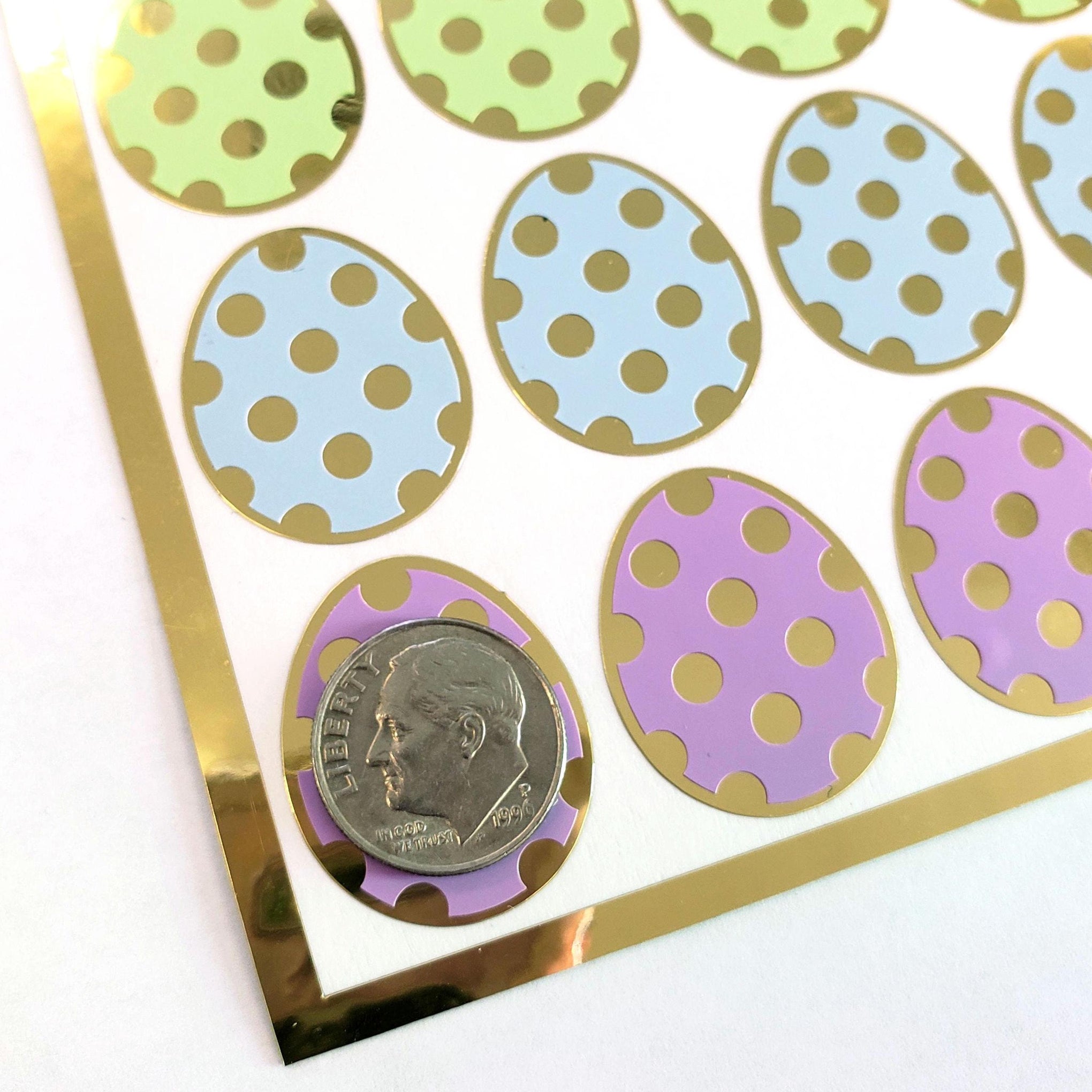 Brighten up your spring projects with this charming set of 30 pastel polka dot Easter egg stickers, each accented with a shimmering gold outline! These small but delightful egg stickers are perfect for decorating cards, scrapbook pages, birth announcements, and more. Add a playful touch to your crafts with these fun and festive stickers!